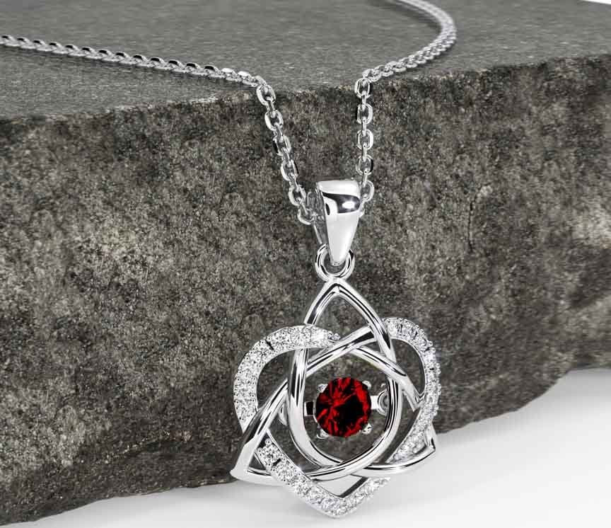 Plata Diamante Granate céltico Nudo Corazón Collar